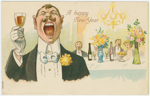 Be of good cheer. At least you're not spending New Year's Eve with this guy.Actually, this card wouldn't make a bad illustration for "The Masque of the Red Death."